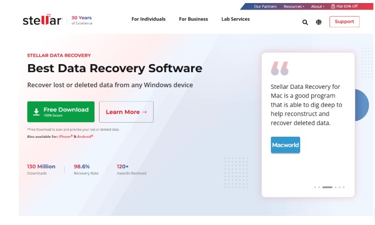 Stellar Recovery is a user-friendly tool with a decent range of data recovery features. The software has three scan types: quick scan, signature scan, and deep scan. Additionally, both its Windows and Mac versions can store data. While it supports a wide range of file types, its recovery performance is underwhelming. Additionally, many users have said it runs slow, especially while scanning.
