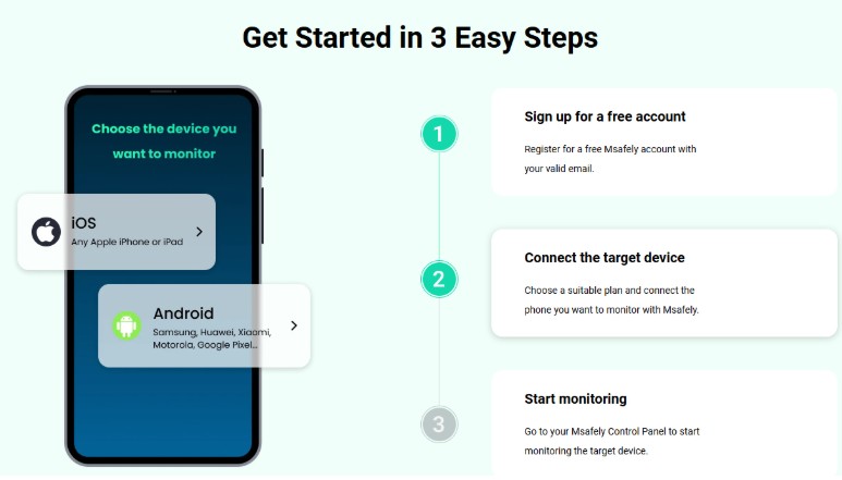 Unlike many WhatsApp monitoring apps, Msafely is easy to set up. The process takes 2 to 3 minutes, and you don’t need any special skills or tools. Here are the steps you need to follow: